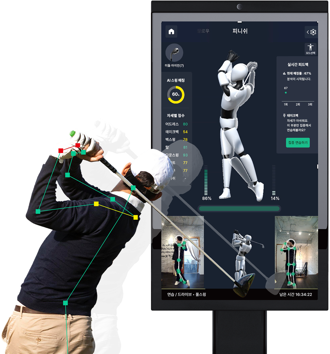 당사의 핵심 플랫폼인 ‘AI 스윙코칭 솔루션, 백도리’는 전통적인 레슨의 한계를 완전히 뛰어넘는 AI 기반 실시간 쉐도잉 스윙교정 플랫폼입니다. 기존 시장이 제공하지 못했던 정밀한 3D 자세 분석, 개인 맞춤형 실시간 피드백, 실감나는 레슨 경험을 단 하나의 서비스에 집약했습니다.